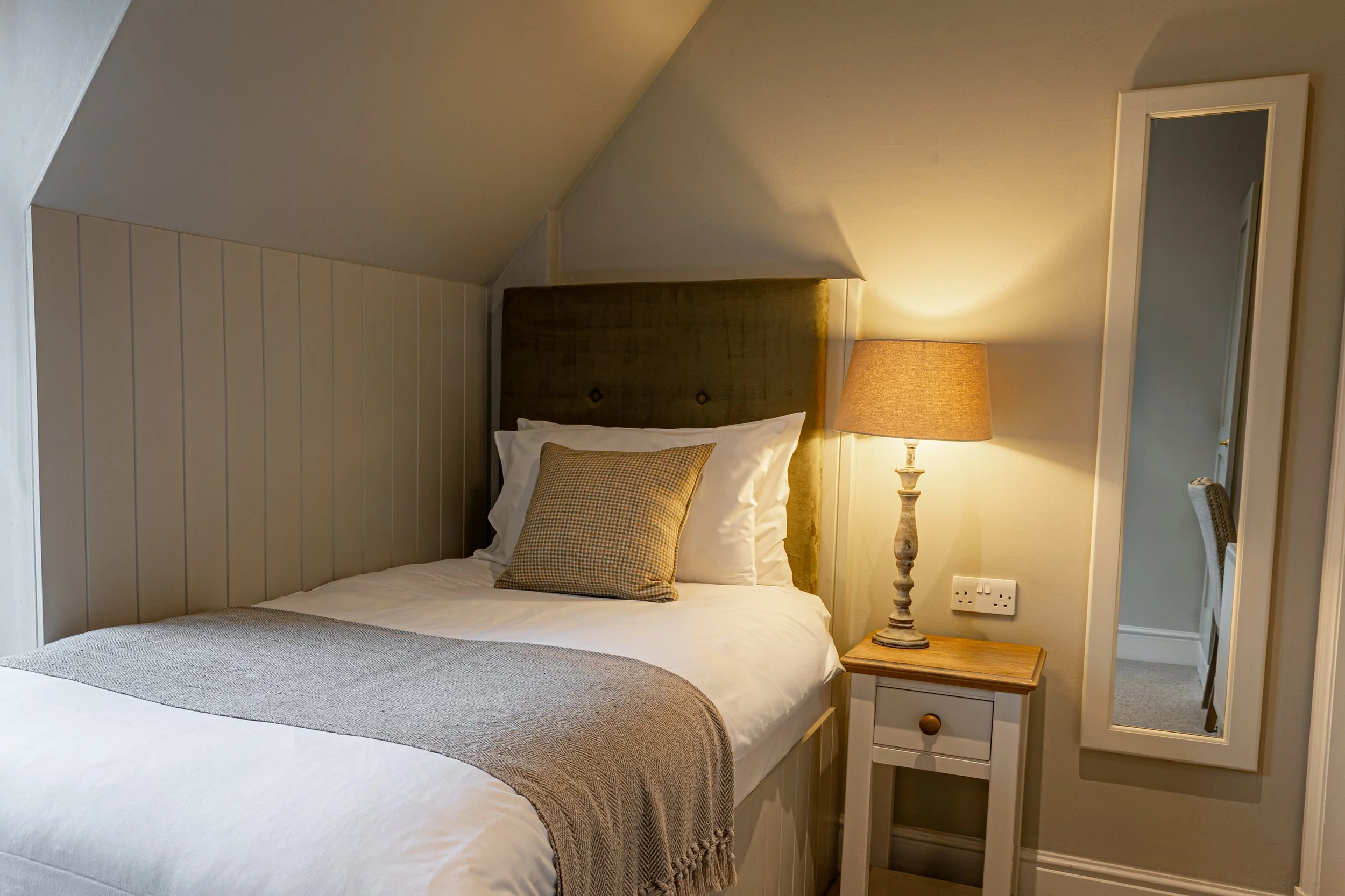 Our cosy single bedroom is small but perfectly formed; it is located on the second floor of the main hotel with an en-suite shower.